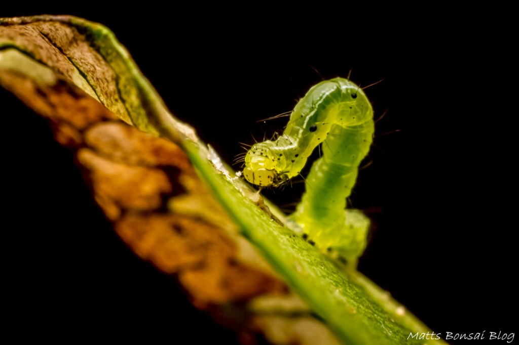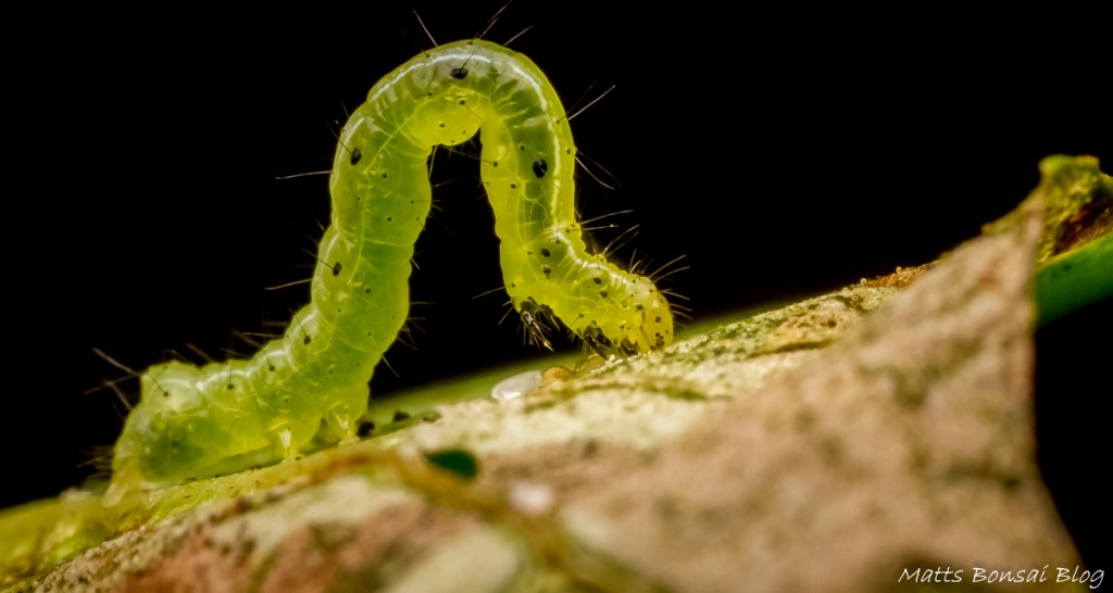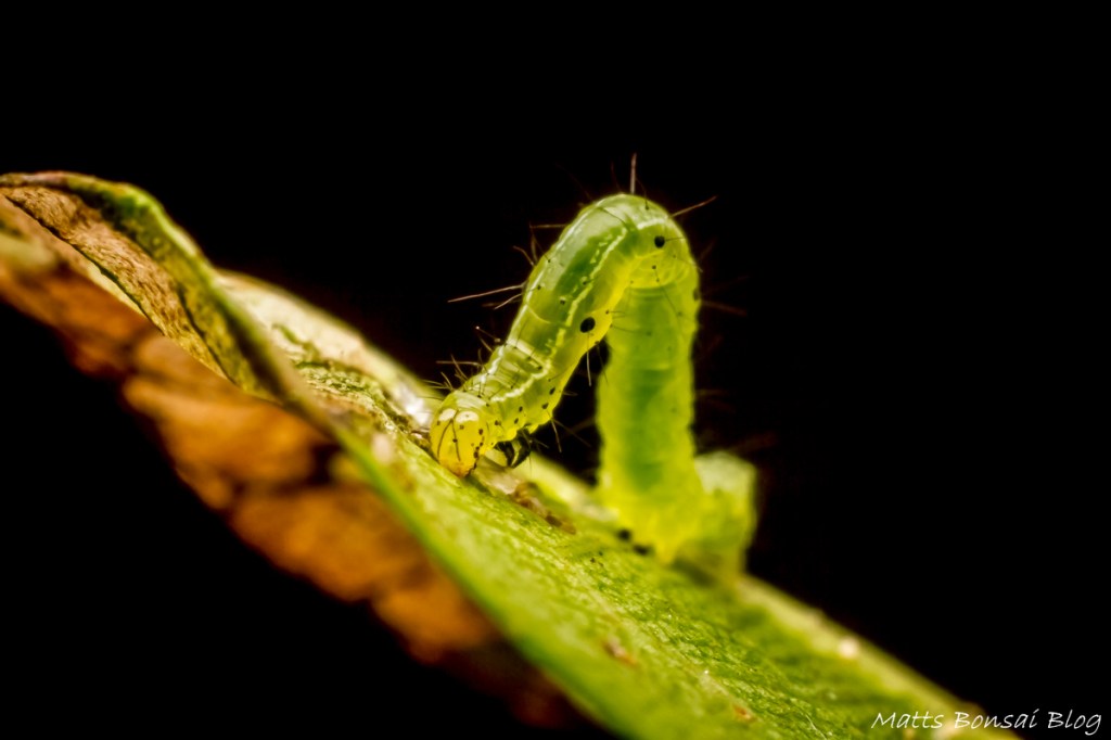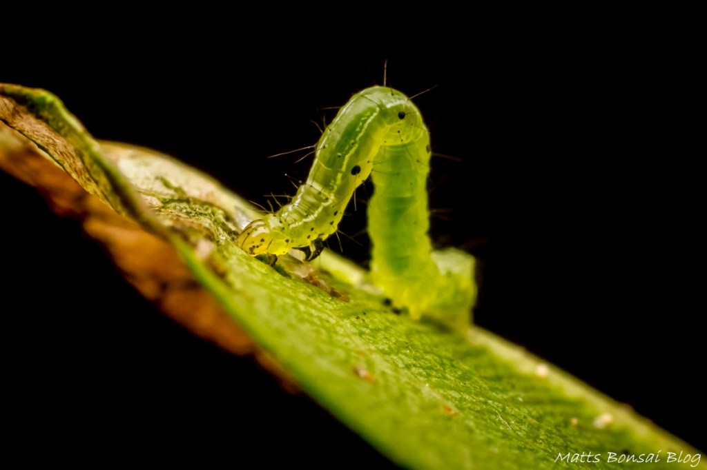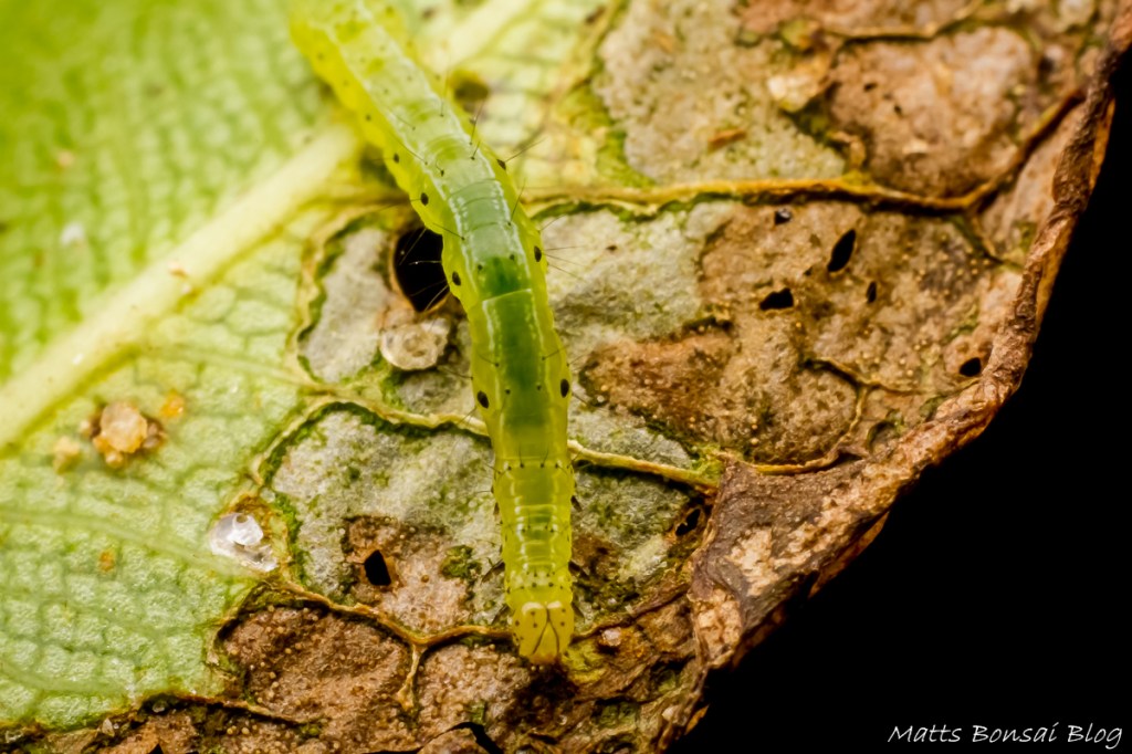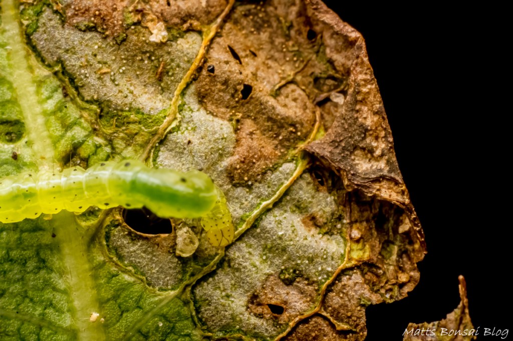 Over the summer period I do not spray for insects because midsummer temperatures and insecticides can kill bonsai. This year I have taken particular attention to what happens over this period and I have found something chewing on my leaves, particularly overnight.