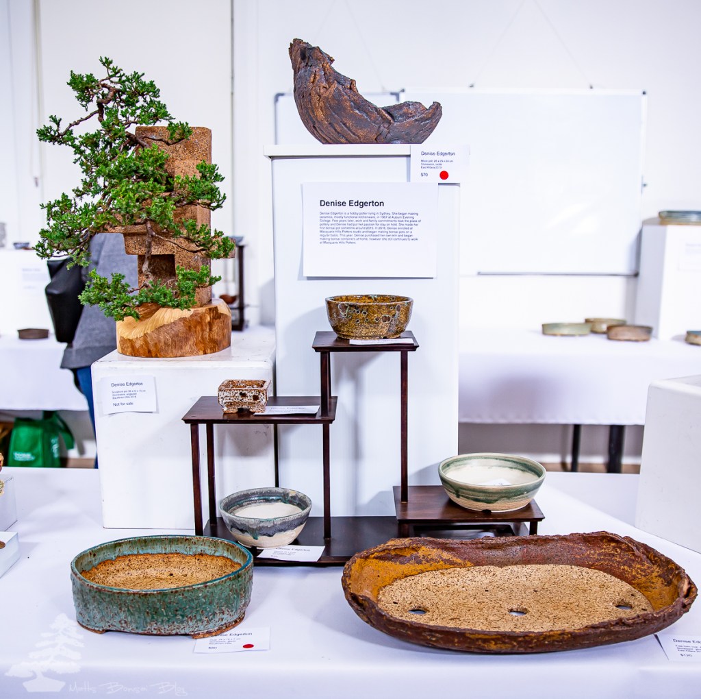 Denise Edgerton: an old friend I used to do bonsai classes with many years ago with under Megumi Bennett. It was really lovely to catch up with Denise who is making some really beautiful pots. I purchased two of Denise’s pots at the exhibition but could have bought a lot more.