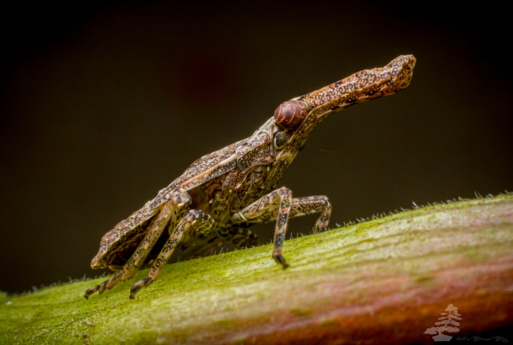 At first I thought it was a weevil because of the long nose but that didn’t sit right with me because it has no antennae. So after some more investigation I believe it belongs to the Fulgoridae family. The Family Fulgoridae contains the world’s largest and most spectacular plant hoppers. This identification makes much more sense because of the way it was moving. Very typical of a tree hopper. I love tree hoppers, they are a diverse group of insects that are great models for macro photography.