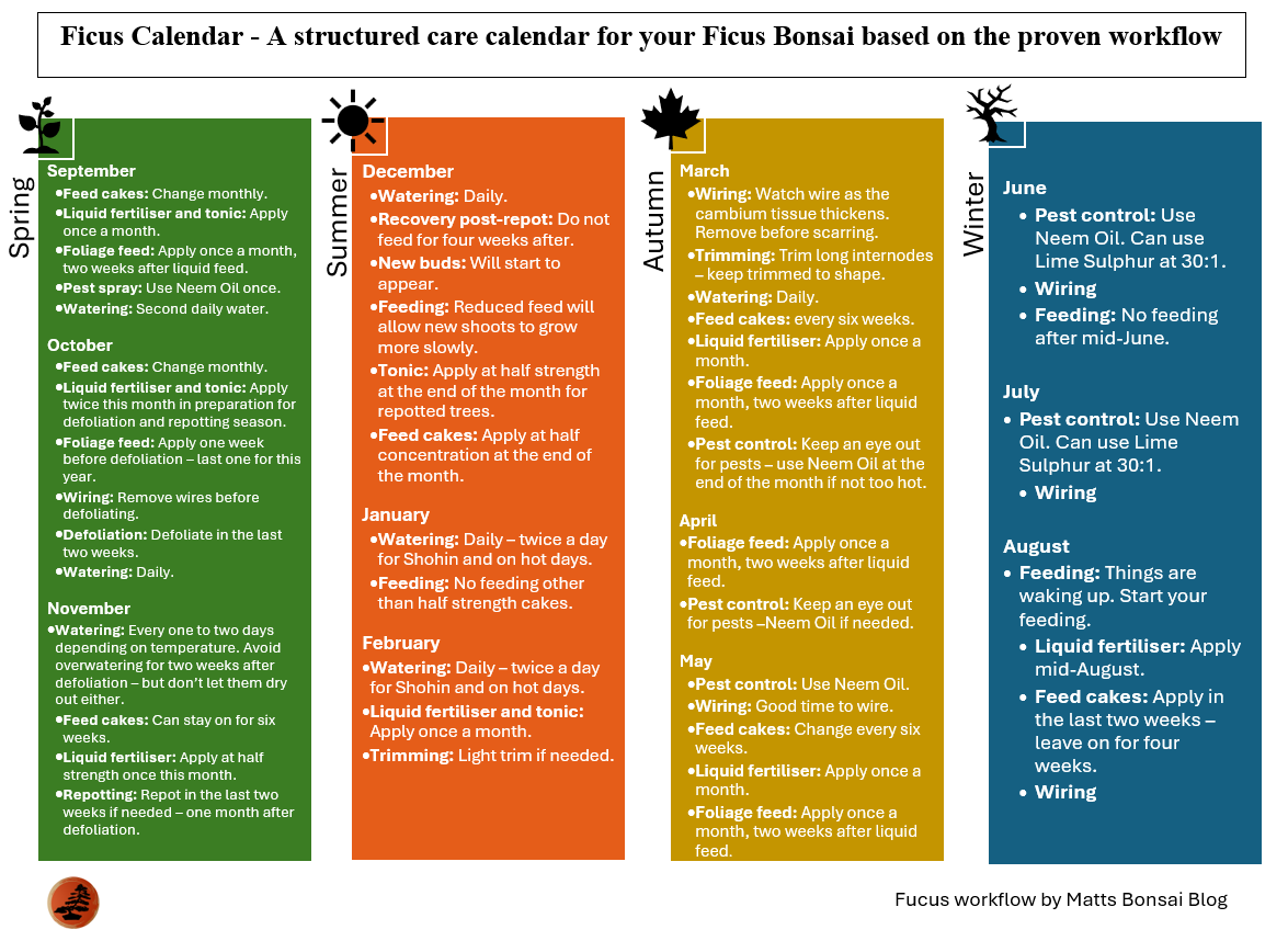 Ficus Calendar – A structured care calendar for your Ficus Bonsai based on the proven workflow